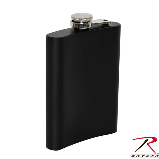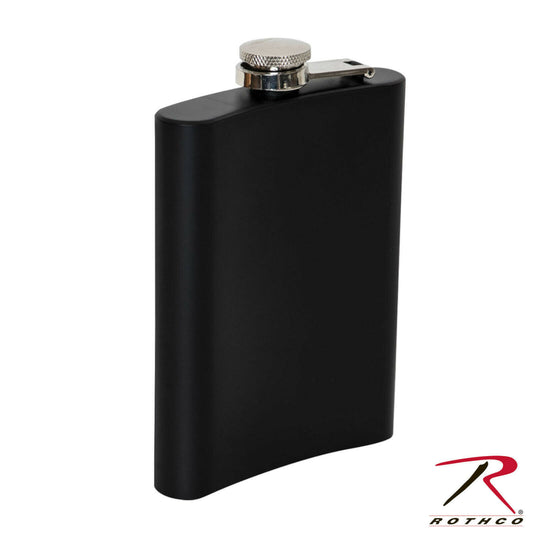 Rothco 8oz. Stainless Steel Black Flask w/ Hinged, Screw-Off Cap - 8 Ounce Flask