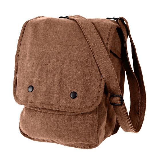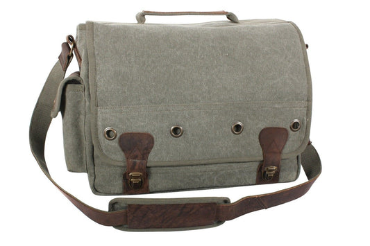 Vintage Canvas Messenger Shoulder Bag with Brass Hardware