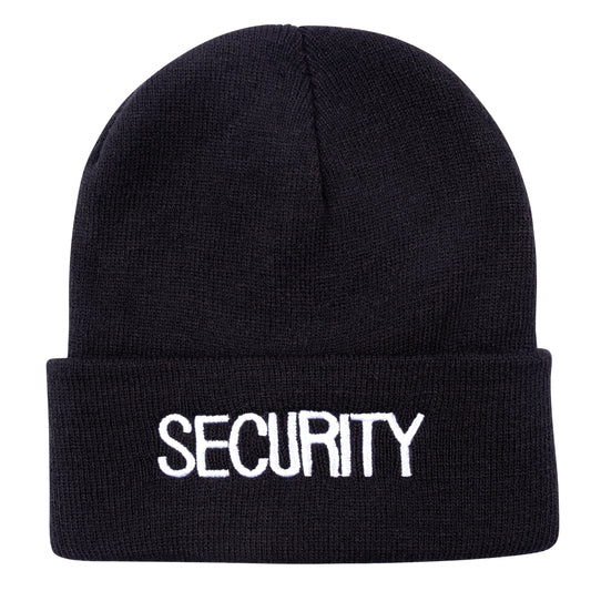Black SECURITY Watch Cap Ski Hat - White Embroidered Winter Hat 100% Acrylic