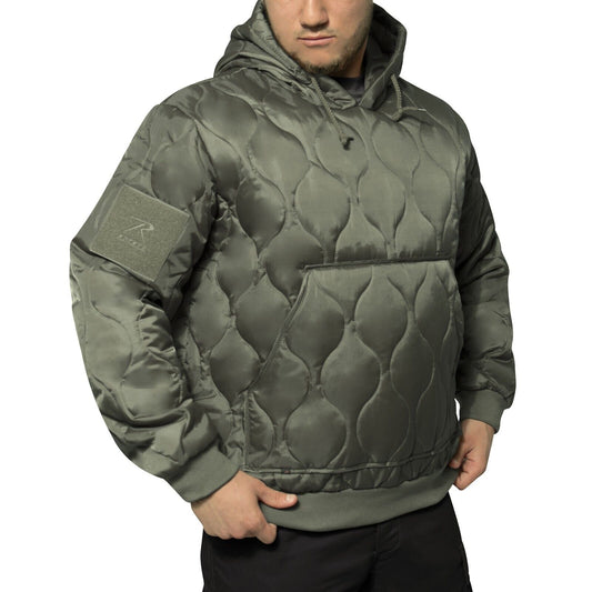 Men's Quilted Woobie Hoodie Sweatshirt With US Flag Patch