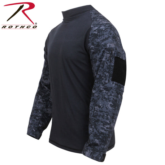 Men's Midnight Digital Camo Combat Shirt - Includes 2 2"x3" US Flag Patches