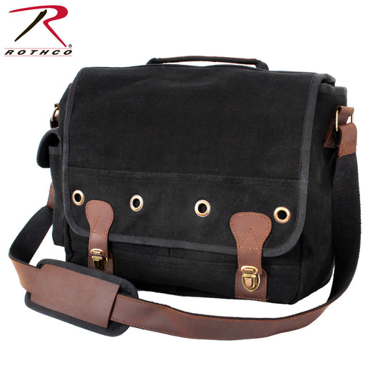 Rothco Canvas Trailblazer Laptop Bag - Black Canvas Portfolio Bag w Brown Accent