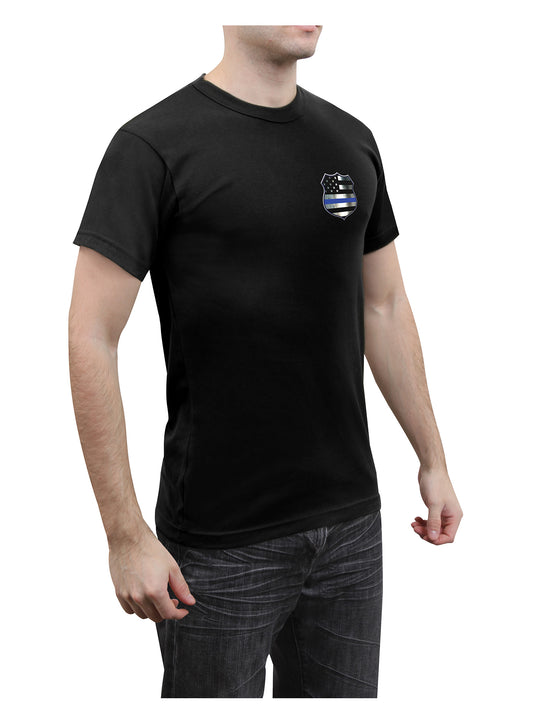 Rothco Thin Blue Line Shield T-Shirt - Men's Black TBL US Flag Tee With Shield