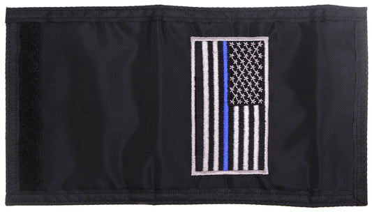 Thin Blue Line Flag Wallet - Black Nylon Tri-Fold Wallet With TBL Embroidery