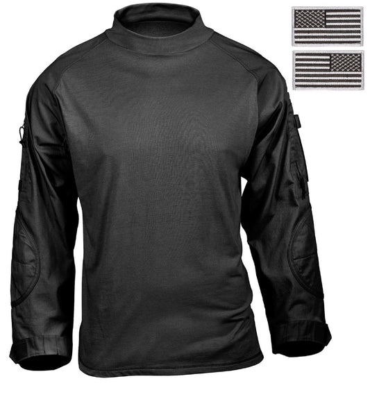 Rothco Mens Cotton Blend Tactical Airsoft Combat Shirt & 2 Free USA Flag Patches