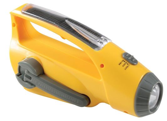 Yellow Solar & Wind-Up Crank Power Flashlight & AM/FM Outdoor Survival Radio