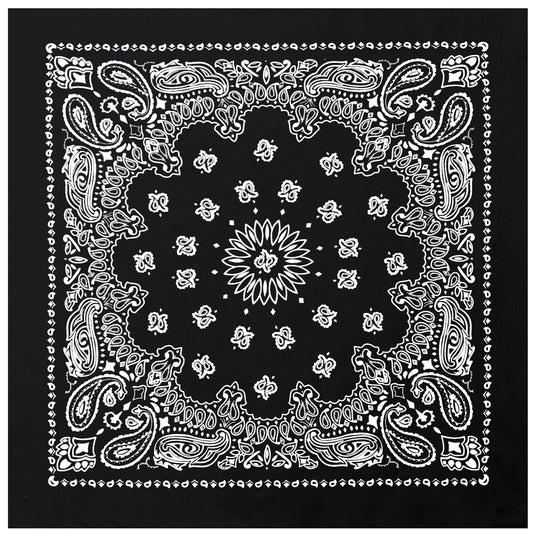 6-PACK Black Paisley Bandanas Six Big Large 27" Trainmen Cotton Biker Headwraps