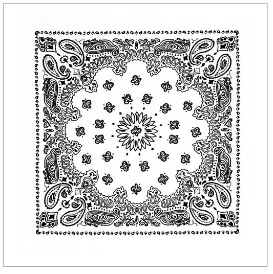 6-PACK Big White Paisley Bandanas Six LARGE 27" Trainmen Cotton Biker Headwraps