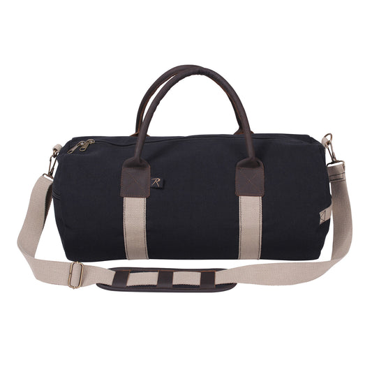 Canvas & Leather Gym Duffel Bag - Black With Tan Shoulder Strap & Brown Handles
