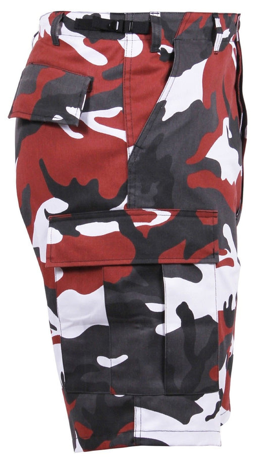 Men's Red Camouflage BDU Cargo Shorts - Black, Red & White Camo Shorts