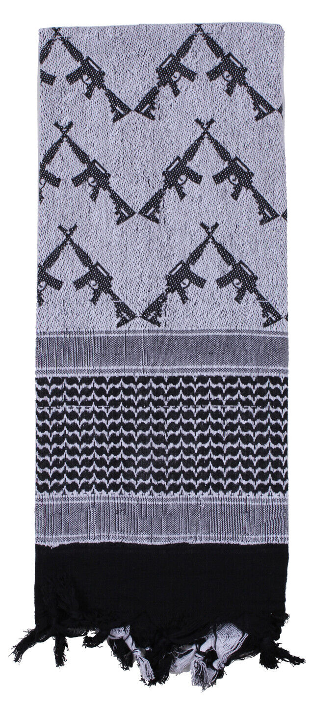 - The Crossed Rifles Shemagh Tactical Desert Keffiyeh Scarf is a versatile and durable scarf featuring a unique crossed design. Ideal for tactical use and outdoor protection from sun, wind, and sand.