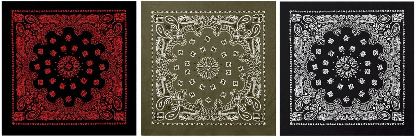 - You Receive Black With Red Paisley, Green With Black/White Paisley and Black With White Paisley (Pictured)