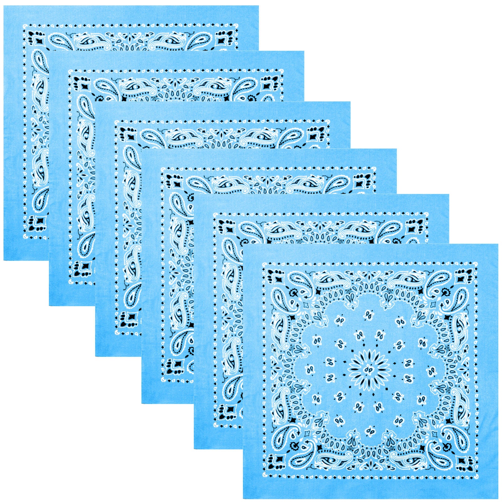 Light Blue Trainmen Paisley Bandana 6-Pack Extra Large Head & Face Wrap 27"x27"