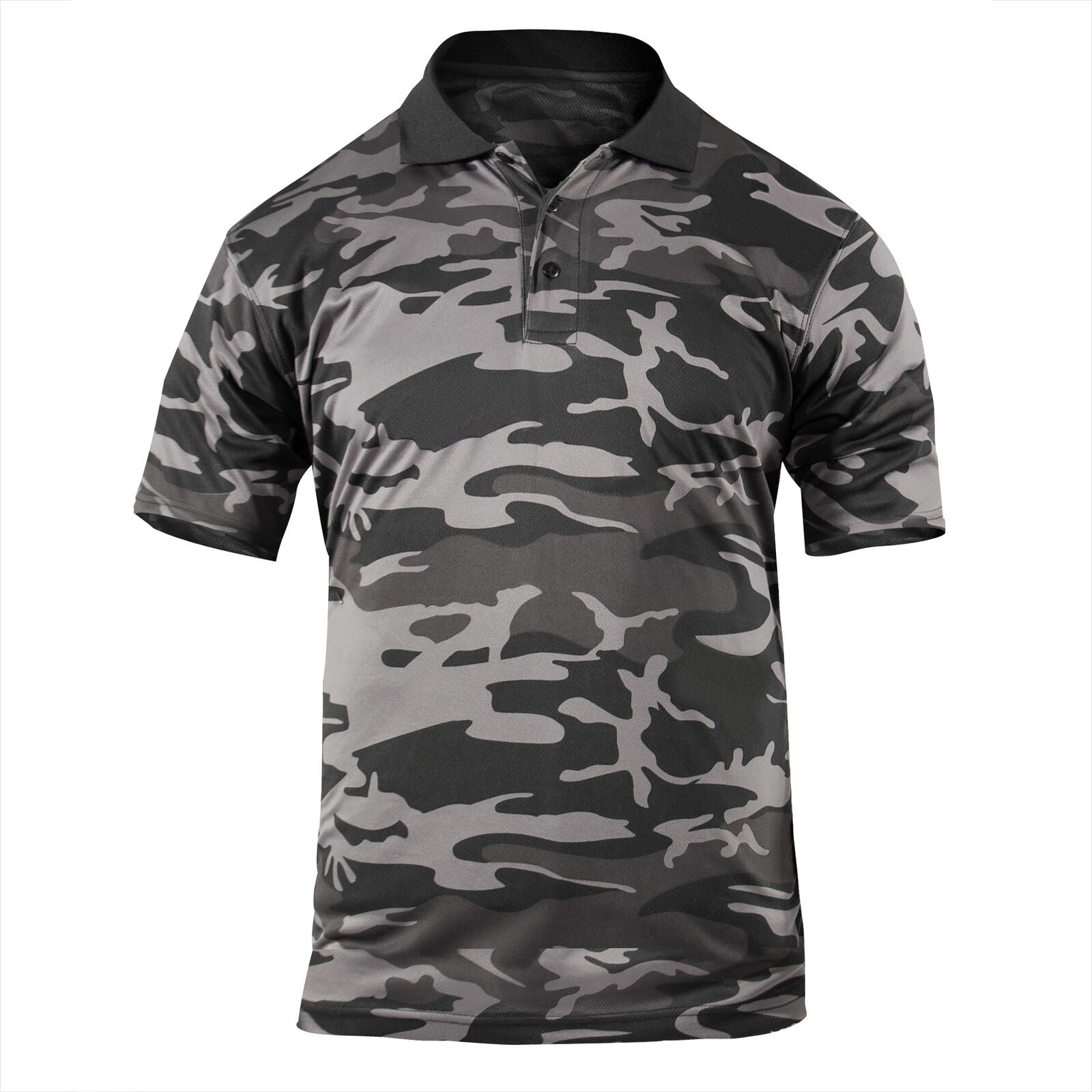 Men's Black Camo Moisture Wicking Polo Short Sleeve Polyester Shirt
