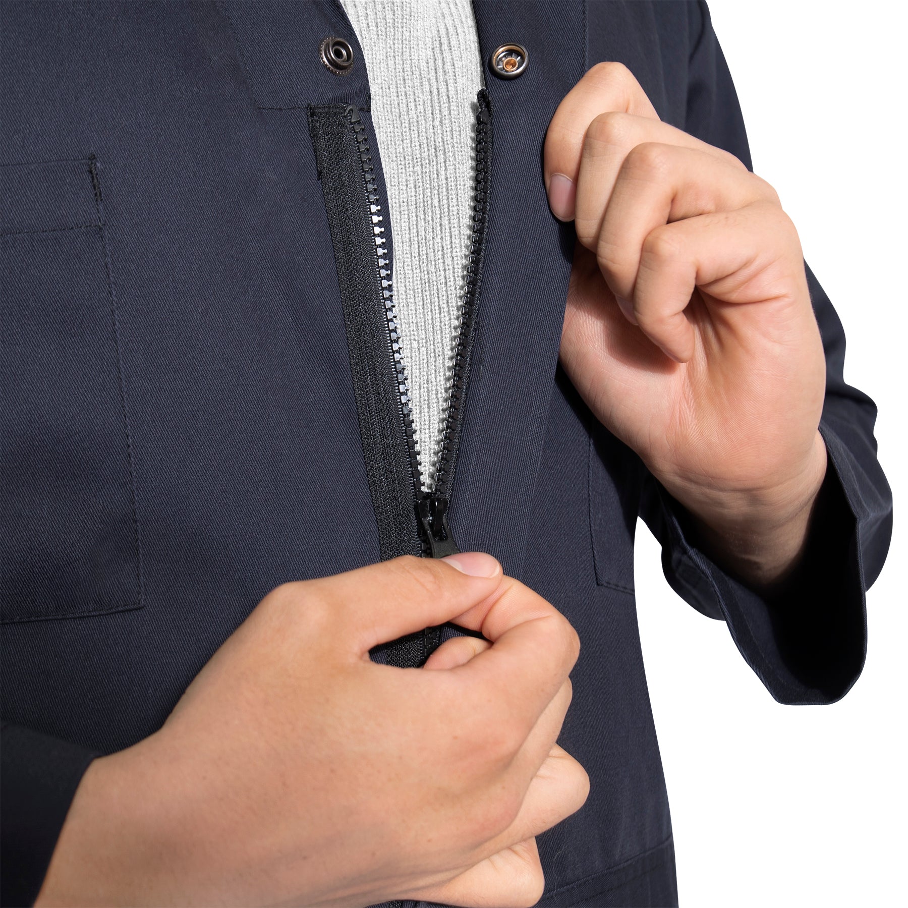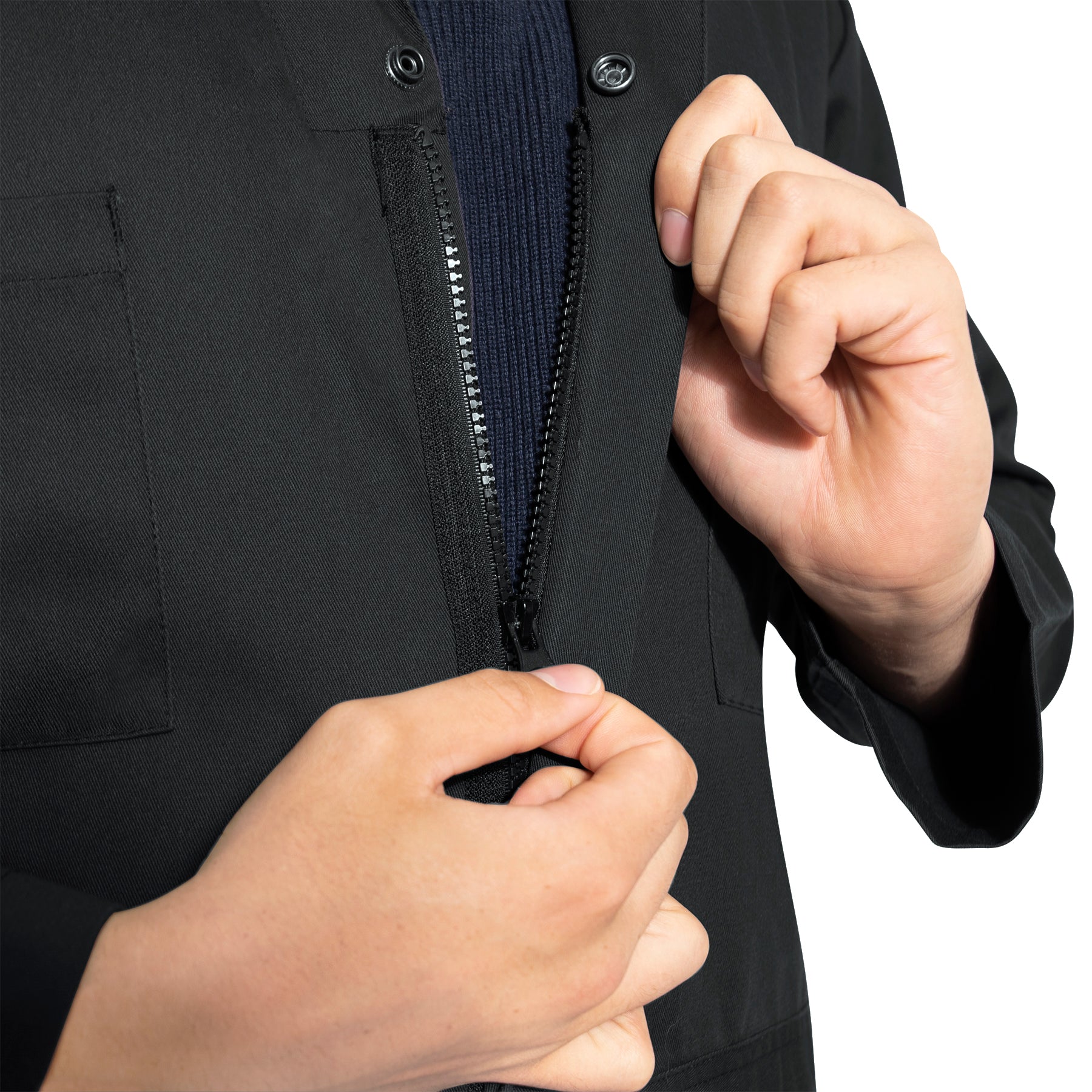 - Two-Way Zipper On The Coverall Is Concealed By A Button Closure For A Clean, Professional Appearance