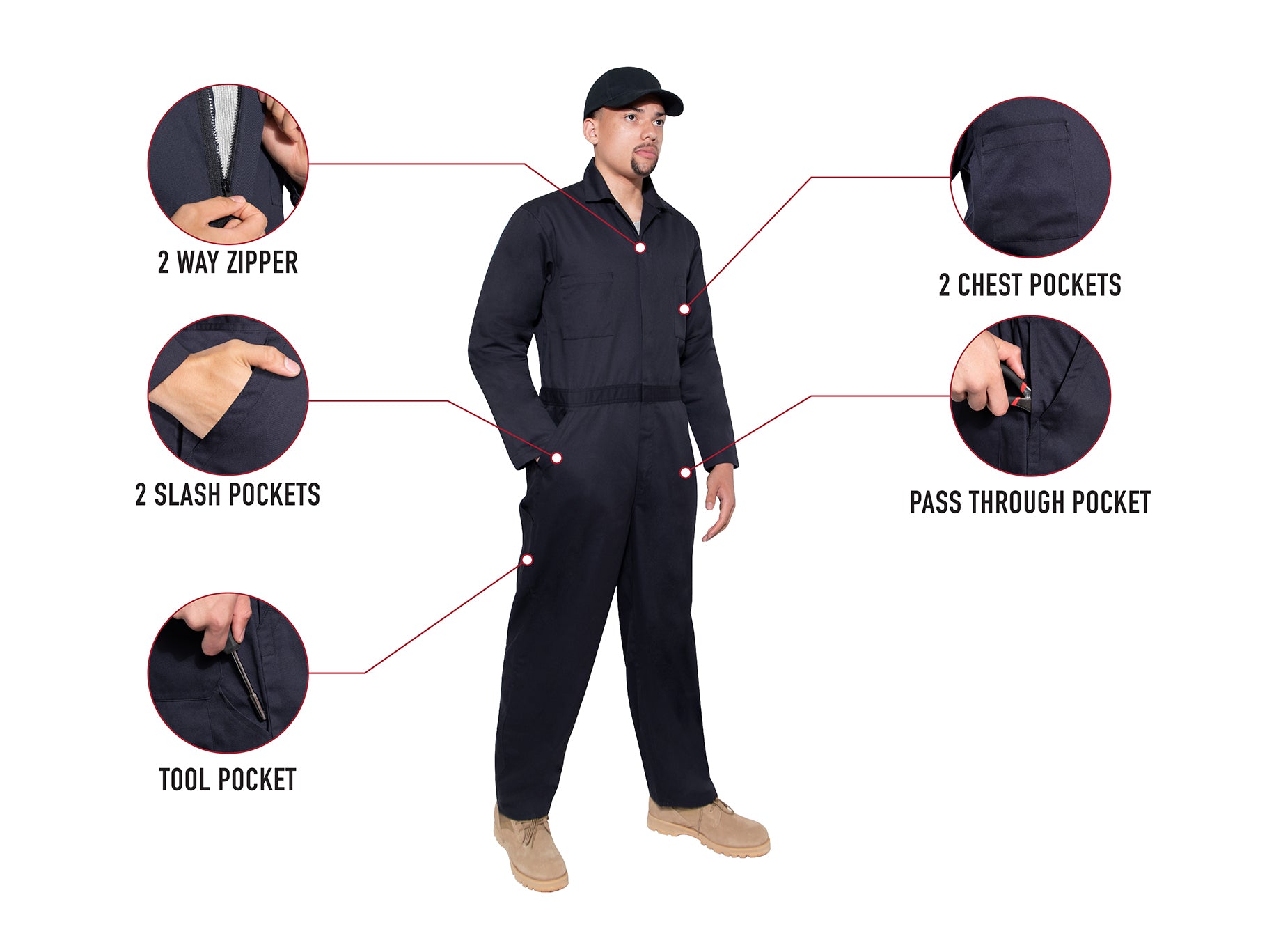 Rothco's Workwear Coverall features a lightweight yet durable composition so you can perform your professional duties with confidence. This coverall is ideal for mechanics, electricians, engineers, and more.