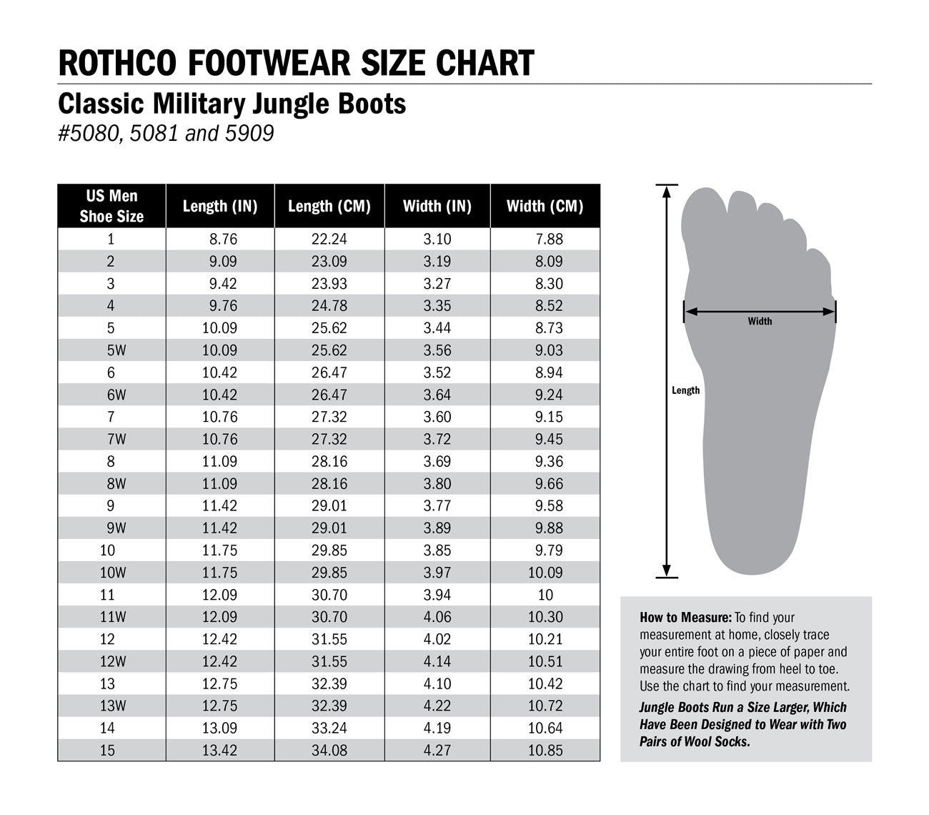 Rothco's GI Style Jungle Boots Features A Canvas & Nylon Upper, Black Leather Toe & Heel With Black Rubber "Panama" Sole, 8" High Boot. Take These Classic GI Combat Boots On A Great Hike Outdoor, On The Airsoft Field Or Just With A Pair Of Vintage Paratrooper Pants. Rothco's Jungle Boots Are Sizes To GI Specification; The Boots Run A Size Larger, Which Have Designed To Wear With 2 Pairs Of Wool Socks.