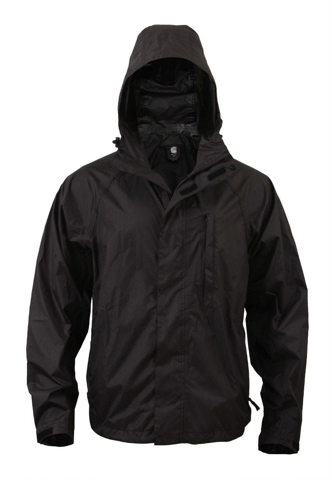 Rothco Packable Black Rain Coat Jacket - Folds into its own Pack!