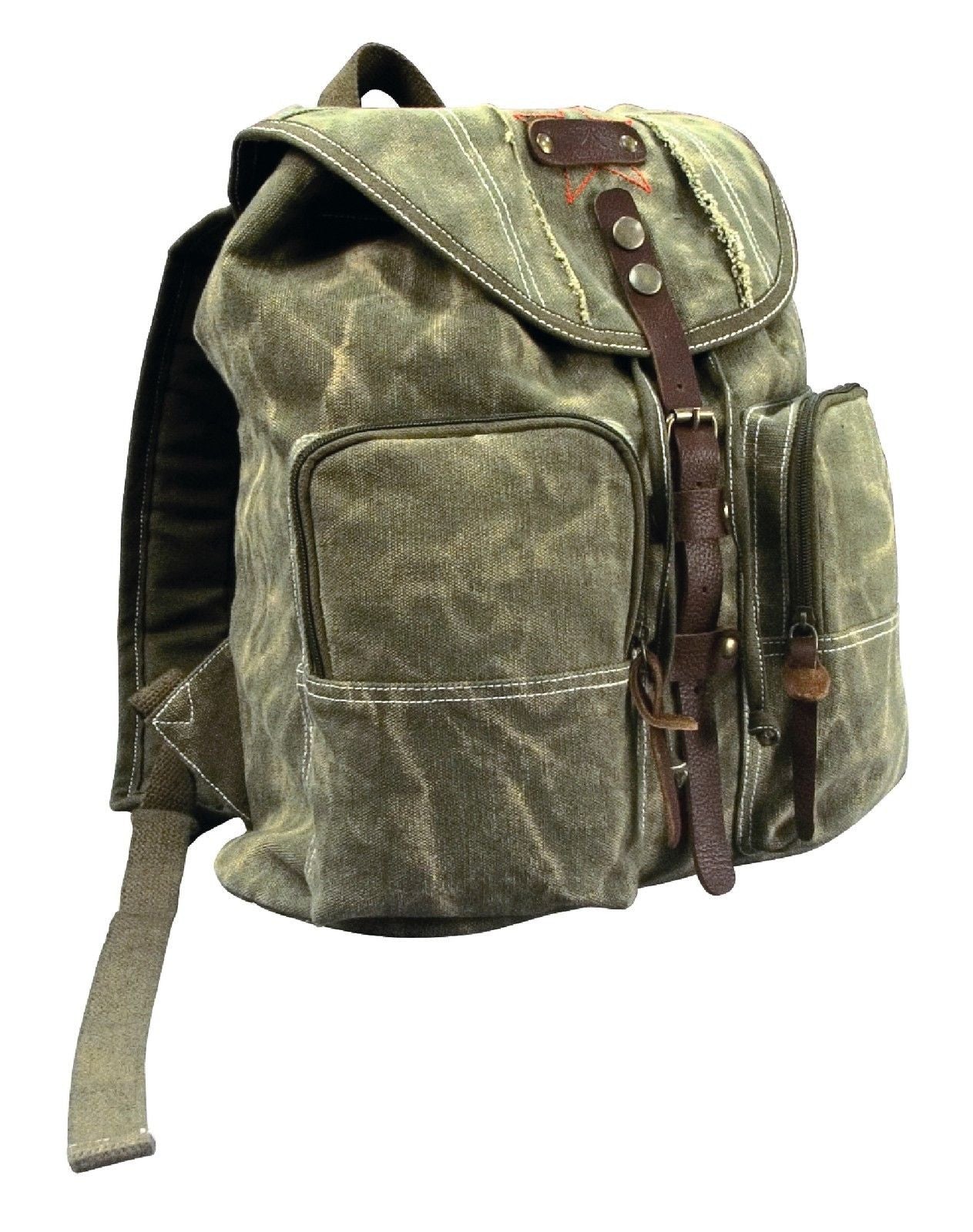 Stonewashed Canvas Backpack w/ Leather Accents - Casual Grunge Style School Bag