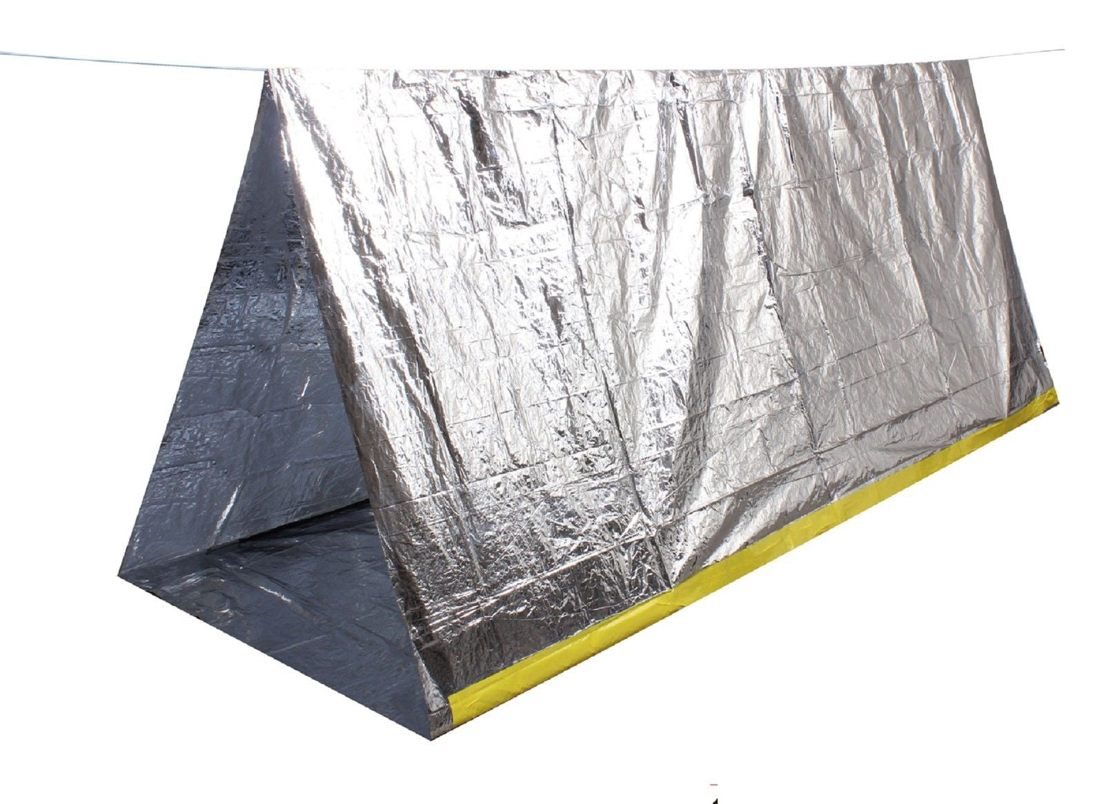 Rothco's Reflective Survival Tent provides effective protection for two adults from the elements in an emergency situation; the reflective material helps conserve body heat.The tent contains a 3 meter long nylon rope and is compact & lightweight for easy storage. Great for a bug out bag or emergency kit.